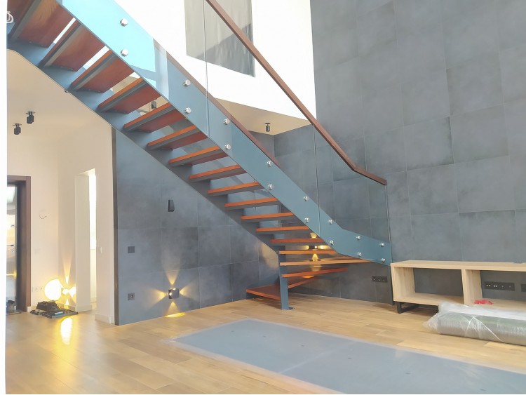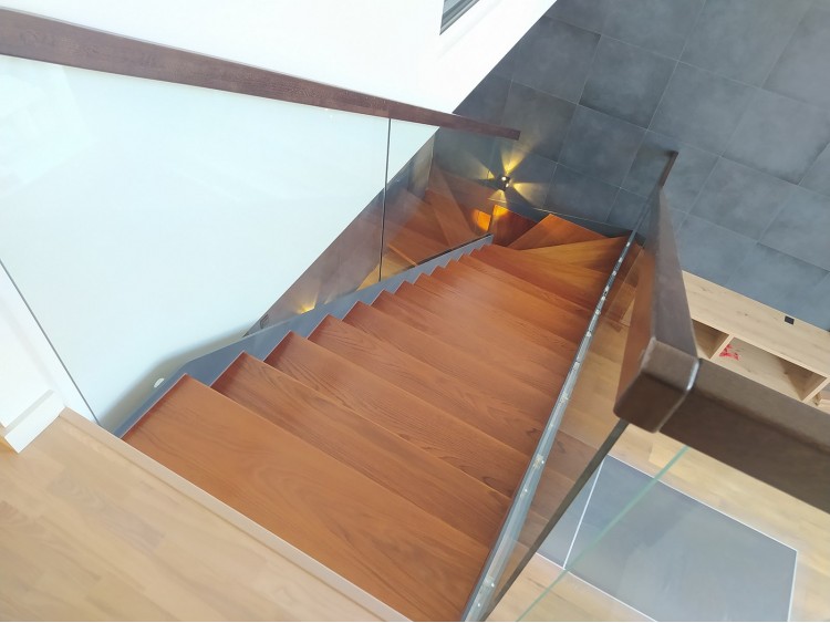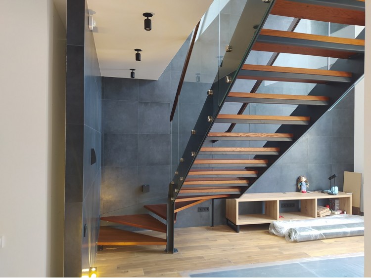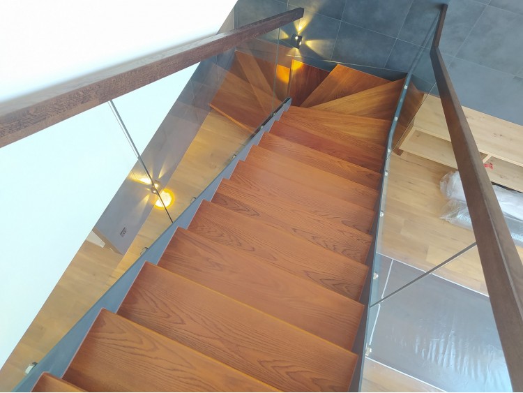 К данной лестнице опционально может быть заказано ограждение проёма на втором этаже (балюстрада).