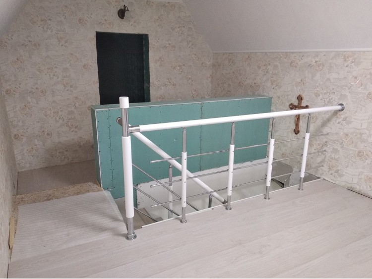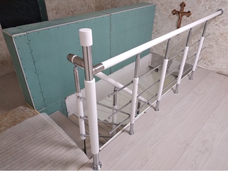К хромированным, комби и стальным балясинам можно добавить ригель (пруток на балясинах параллельный поручню). В таком случае балясины устанавливаются на каждую вторую ступень.