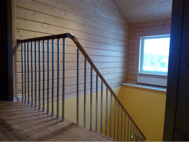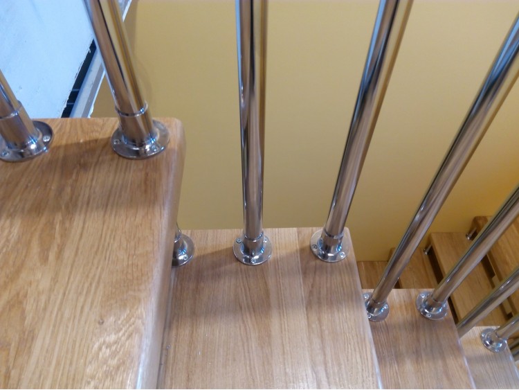К хромированным, комби и стальным балясинам можно добавить ригель (пруток на балясинах параллельный поручню). В таком случае балясины устанавливаются на каждую вторую ступень.