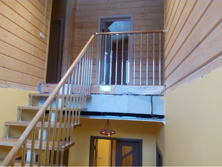 К данной лестнице опционально может быть заказано ограждение проёма на втором этаже (балюстрада), которое будет выполнено в одном стиле с ограждением на лестнице.