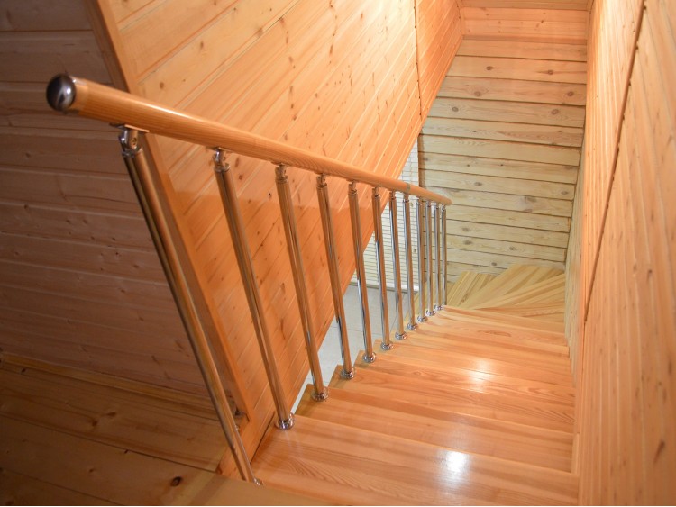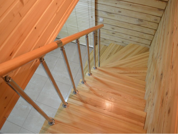 К хромированным, комби и стальным балясинам можно добавить ригель (пруток на балясинах параллельный поручню). В таком случае балясины устанавливаются на каждую вторую ступень.