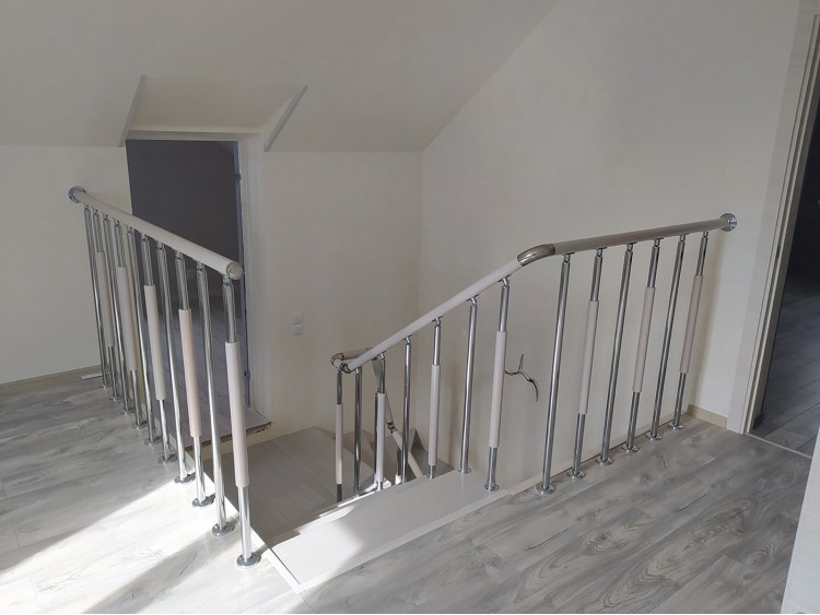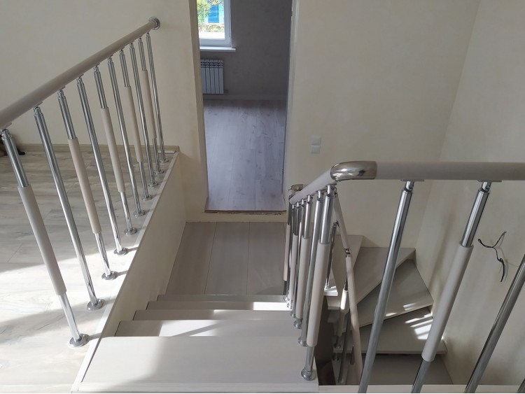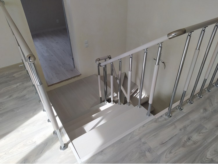 К хромированным, комби и стальным балясинам можно добавить ригель (пруток на балясинах параллельный поручню). В таком случае балясины устанавливаются на каждую вторую ступень.