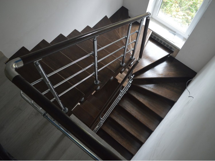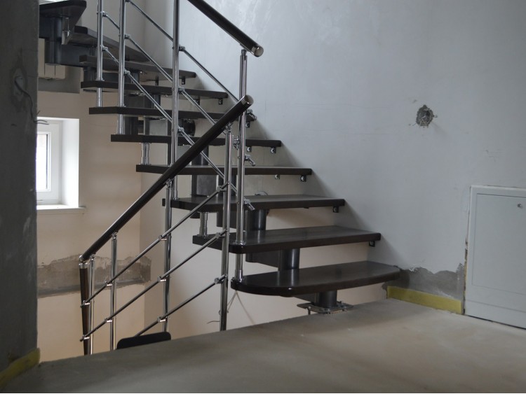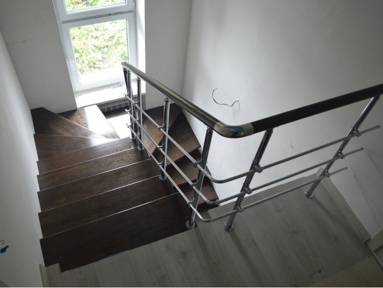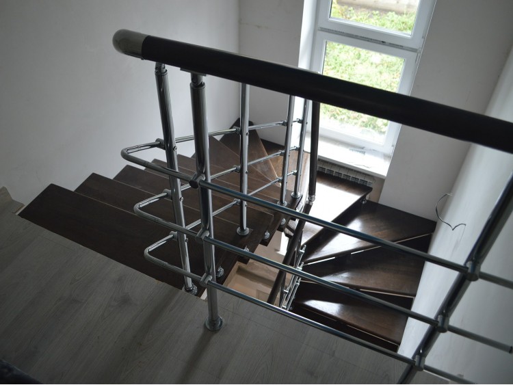 К хромированным, комби и стальным балясинам можно добавить ригель (пруток на балясинах параллельный поручню). В таком случае балясины устанавливаются на каждую вторую ступень.