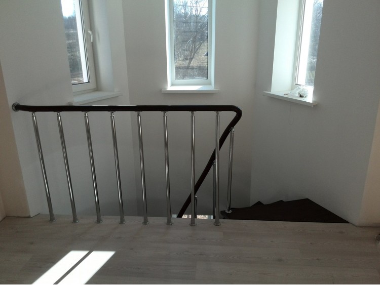 К хромированным, комби и стальным балясинам можно добавить ригель (пруток на балясинах параллельный поручню). В таком случае балясины устанавливаются на каждую вторую ступень.