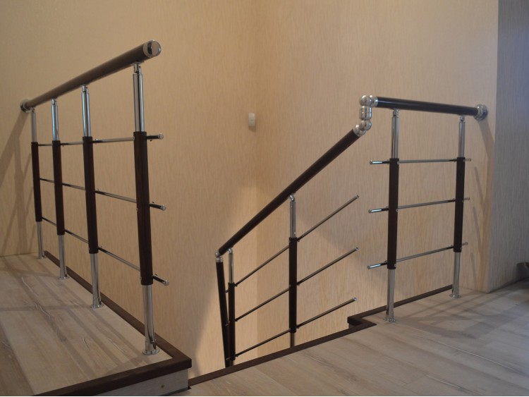 К хромированным, комби и стальным балясинам можно добавить ригель (пруток на балясинах параллельный поручню). В таком случае балясины устанавливаются на каждую вторую ступень.