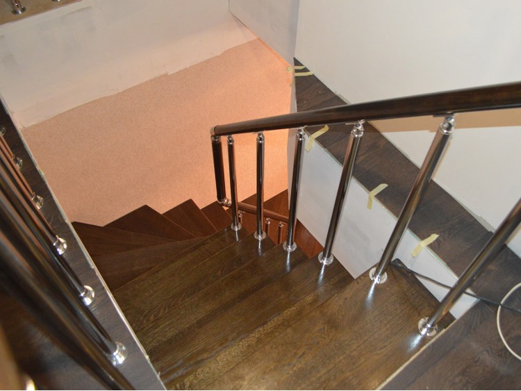 К хромированным, комби и стальным балясинам можно добавить ригель (пруток на балясинах параллельный поручню). В таком случае балясины устанавливаются на каждую вторую ступень.