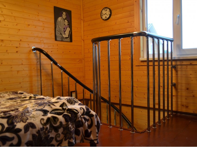 К данной лестнице опционально может быть заказано ограждение проёма на втором этаже (балюстрада), которое будет выполнено в одном стиле с ограждением на лестнице.